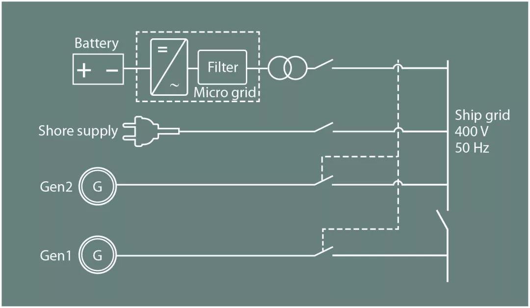 在改造前,两台柴油辅助发电机用于为酬载、驾驶台设备、发动机室泵和灭火设备等提供动力。为满足最坏情况下的动力需求(比如船上着火时),这些发电机的额定容量为2 x 86 kW,而典型载荷为12 kW,燃料消耗非常大(高达300g/ kWh)。为了满足需求,这些发电机每天需要运行19个小时。