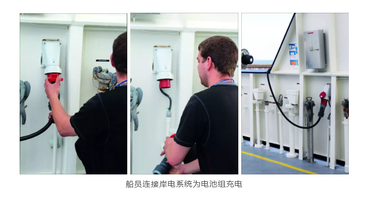 船上安装的电池组容量为88 kWh,只有在电池电量下降时,辅助发电机才会自动启动对电池进行充电。燃料消耗减少到了209 g/kWh,发电机每天的运行时间大幅缩短到了只有20分钟!
