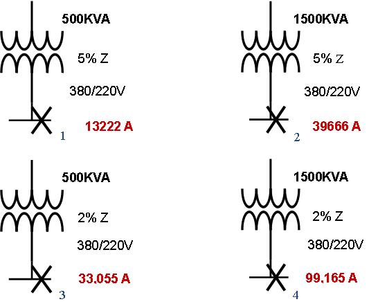 Z为电网(变压器加上电缆)内阻。图二以电网内阻为5%和2%为例,分别计算出Isca的值。