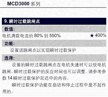 上图是丹佛斯软起动器瞬时过载保护的整定参数。