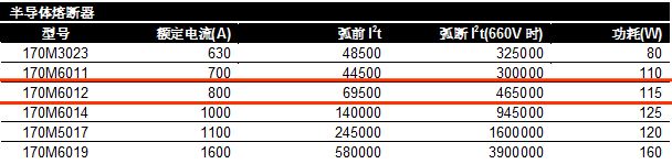 半导体熔断器170M6012的数据见下表:
