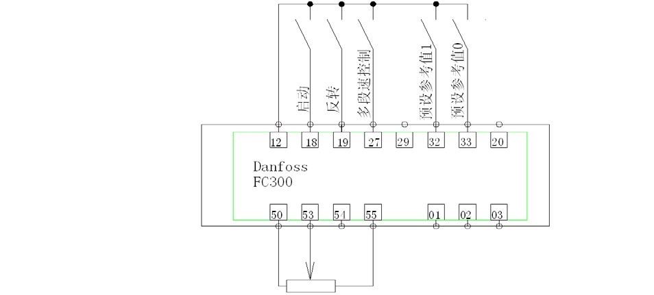 端子 33 数字输入 | [0] 无功能 | [16] 预置参考值位 Bit0 |
