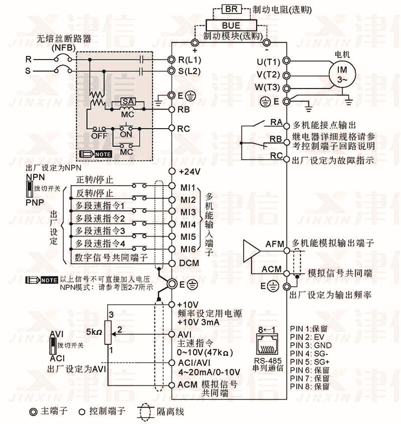l 主回路配线与控制回路的配线必需隔离,以防止发生误操作。