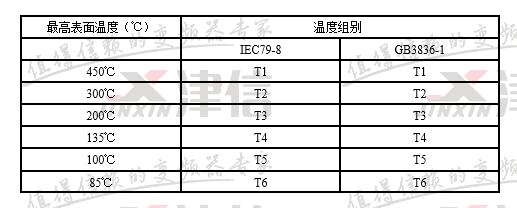 这是与气体点燃温度有关的电气设备(假定环境温度为40℃时)的最高表面温度,点燃能量与点燃温度无关。在标准BS5345第一部分中列出了所有可燃性气体和其组别。