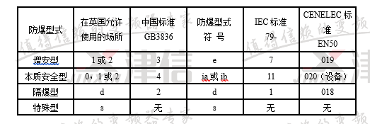 ①各种防爆型式的对应标准