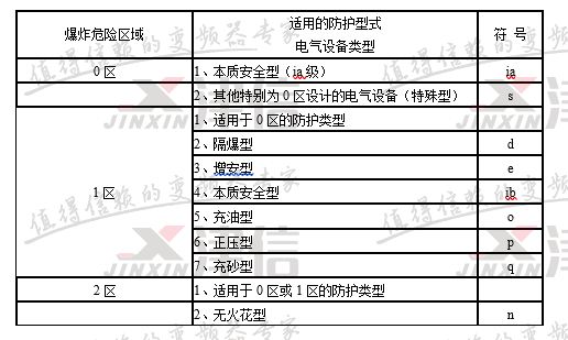 ②气体爆炸危险场所用电气设备防爆类型选型表