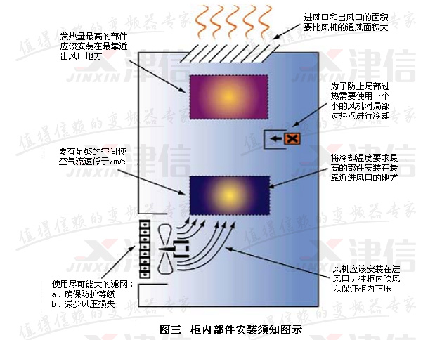 6) 风机易安装在进风口,往柜内吹风以维持柜内正压;