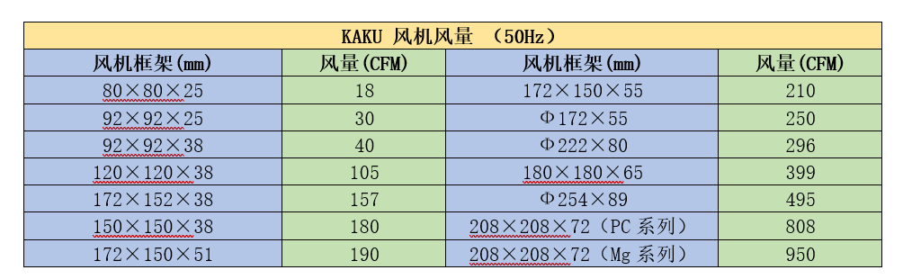 下表列出市场上比较常见的卡固(KAKU)风机的数据,作为茄子影视污成人上面例子的风机选型参考。