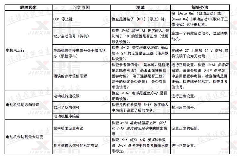 | 31 | V 相缺相 | X | X | 电动机 V 相缺失。请检查该相。 | |