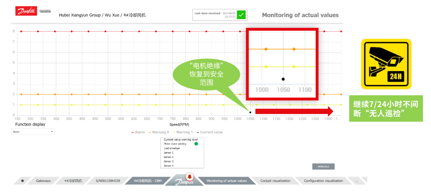改造方案的目的是让现场技术人员能够对系统进行实时监控,同时可以提前预警,防止非计划停机。祥云化工最终同丹佛斯达成一致,合作开发数字化解决方案,增加丹管家+CBM(电机绕组绝缘,电机负载包络),并于2021年年底正式上线。