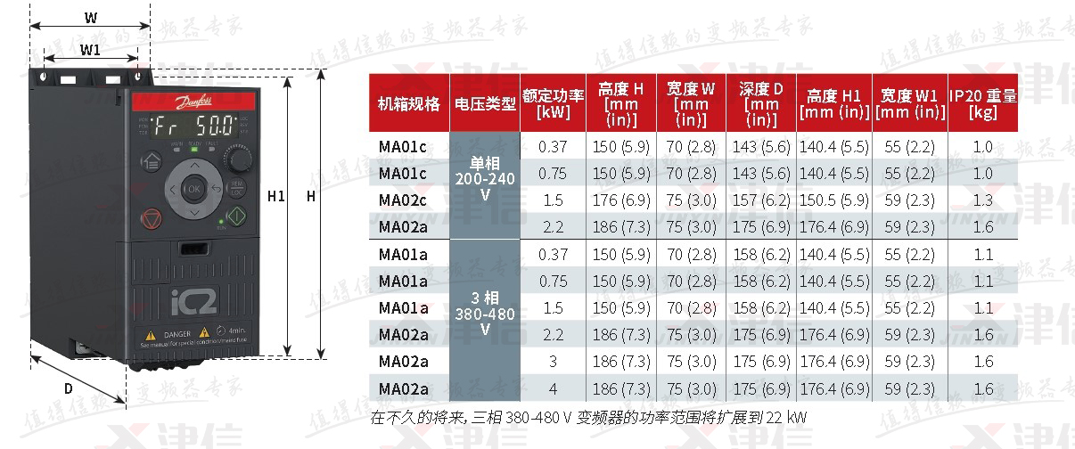 丹佛斯IC2变频器型号代码和描述的定义如下: