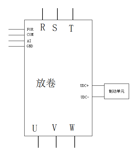 - 放卷变频器采用开环转矩控制,电机处于发电状态,必需接制动单元,并且与收卷变频器共直流母线;