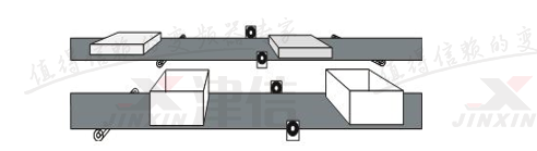如上图所示,即使两条输送带同步运行,盖子仍旧无法在正确的时间与盒子对齐,使用SYNCM指令时,可通过外部标记对主机与从机之间的位置偏差进行检测,并对可能出现的位置偏差进行修正。